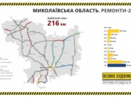 - 10,5 км відремонтованої дороги М-14 у місті Миколаєві;