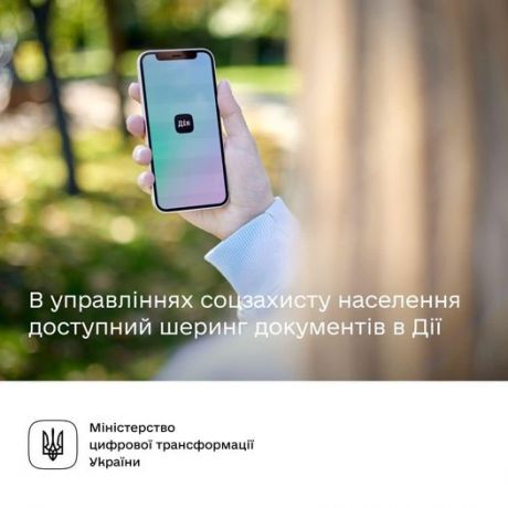 Відтепер в усіх управліннях соцзахисту населення (УСЗН) доступна функція шерингу документів у застосунку Дія. Нею можна скористатися при оформленні допомоги для внутрішньо переміщених осіб та довідки для перетину кордону людям з інвалідністю.