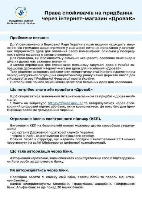 Детальніше про права споживачів на придбання через інтернет-магазин «ДроваЄ» дивіться в інфографіці.
