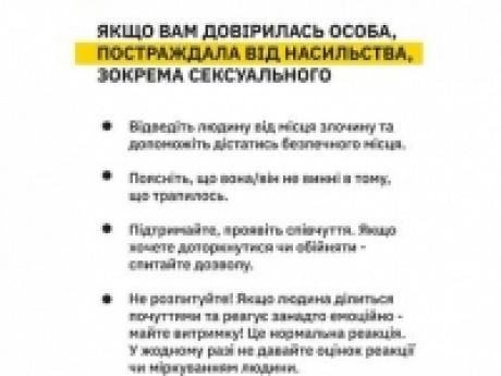 Тут розміщена інформація, яка можете допомогти, якщо вам довірилась особа, яка постраждала від насильства, зокрема сексуального.