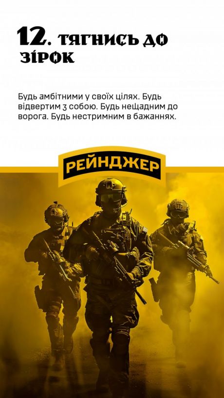 Тут можна ознайомитися з 12 правилами, яких повинен дотримуватися рейнджер, адже це запорука успішного виконання завдань та здобуття перемог.