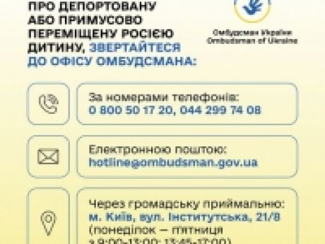 Якщо Вам відомо про примусово переміщену або депортовану дитину, звертайтеся до Офісу Омбудсмана: