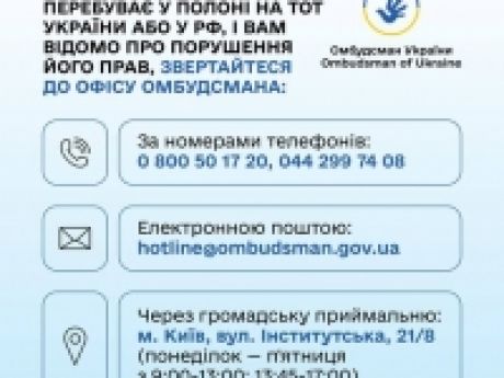 Контакти для звернень до Уповноваженого Верховної Ради України з прав людини: