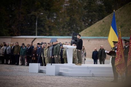 У День захисників і захисниць України Президент Володимир Зеленський відзначив воїнів державними нагородами, вручив бригадам бойові прапори та присвоїв почесні найменування. На заході були присутні керівники Сил безпеки й оборони України, Прем’єр-міністр Денис Шмигаль, керівник Офісу Президента Андрій Єрмак і його заступники, а також посли.