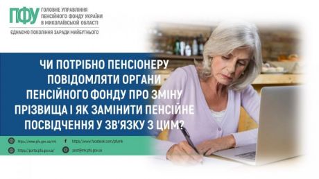 Отримувач пенсії зобов’язаний повідомити Пенсійний фонд про зміну своїх персональних даних. Для цього слід подати відповідну заяву, до якої додати новий паспорт громадянина України та документ, на підставі якого внесено зміни.
