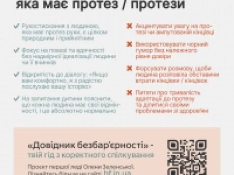 Тонкощам коректної взаємодії з різними людьми, у тому числі зі співрозмовниками, які мають один або кілька протезів, присвячений один із матеріалів оновленого розділу «Довідника безбар’єрності» ( https://bf.in.ua/ethics/liudyna-z-protezom-protezamy ). Він рекомендує не акцентувати увагу на ампутації кінцівок, оскільки це може створити відчуття незручності.