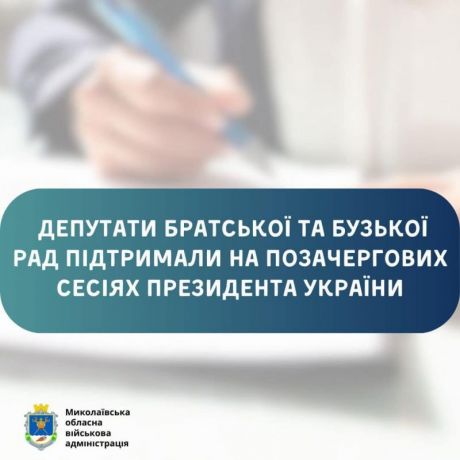 У п’ятницю, 21 лютого, відбулися позачергові сесії Братської селищної ради та Бузької сільської ради Вознесенського району. Головним питанням порядку денного було підтримка Президента України Володимира Зеленського та ухвалення відповідного звернення.