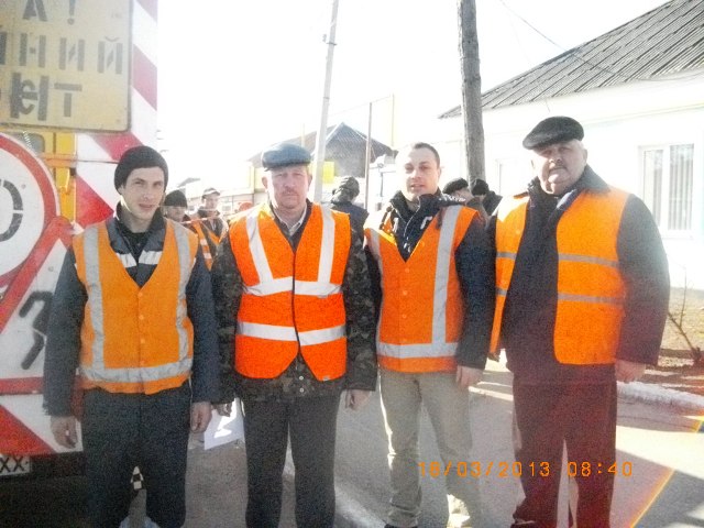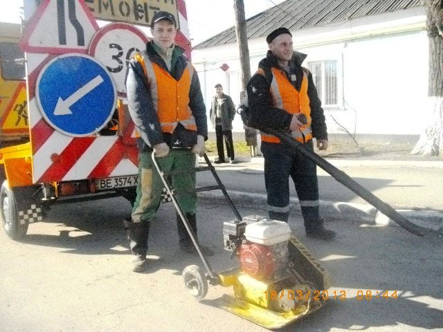 Майстер Троєгубов В.С., начальник філії ДП "Вознесенський райавтодор" Миколаївського облавтодору Оніщенко Г.М., головний інженер Бакинський Р.В., головний механік Ямнюк Т.Й.