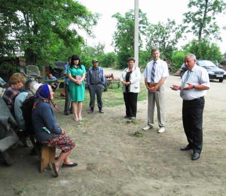 Голова Вознесенської райдержадміністрації О. Кучер та перший заступник голови райдержадміністрації С. Солодаєв провели зустріч з жителями с. Новобілоусівка.