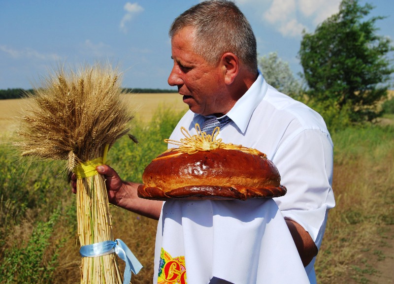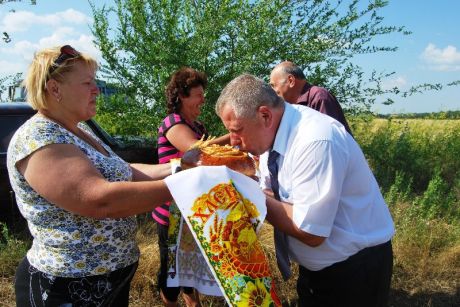 Зустрічали гостей свята короваєм та керівнику району вручили перший сніп.