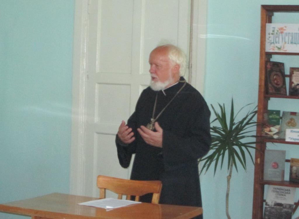 До розмови про висвітлення історичної цінності хрещення Київської Русі приєднався протоієрей Петро Рейнбах - настоятель Свято - Іллівської церкви. Під час спілкування працівники бібліотек району та отець Петро намітили шляхи подальшої співпраці, що полягає не лише в спільному проведенні виховних заходів для дітей та молоді, а також передбачає допомогу центральній бібліотеці в роботі над створенням електронного ресурсу «Храми Вознесенщини»