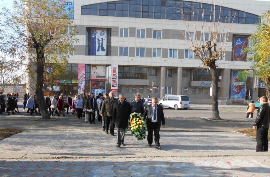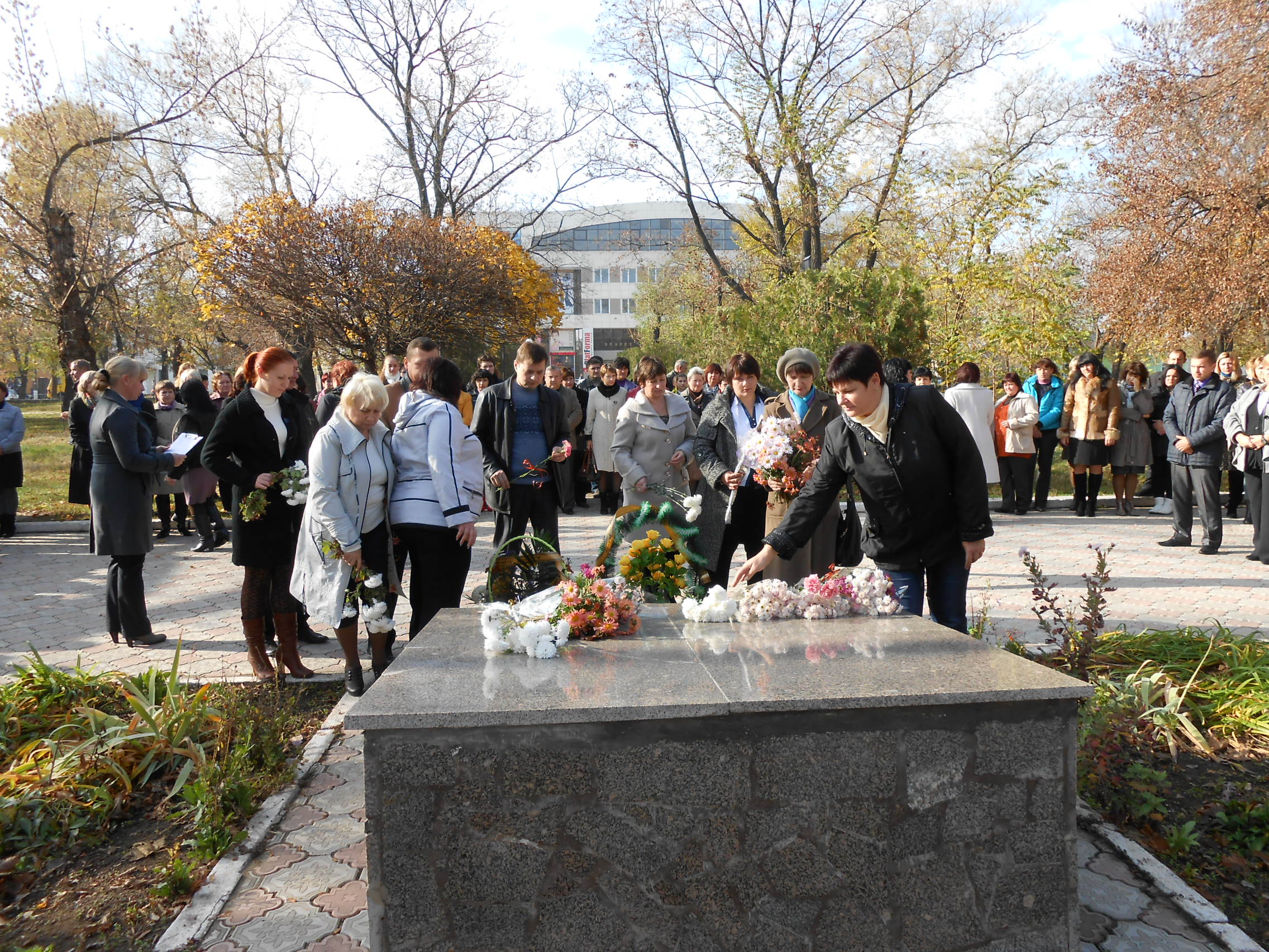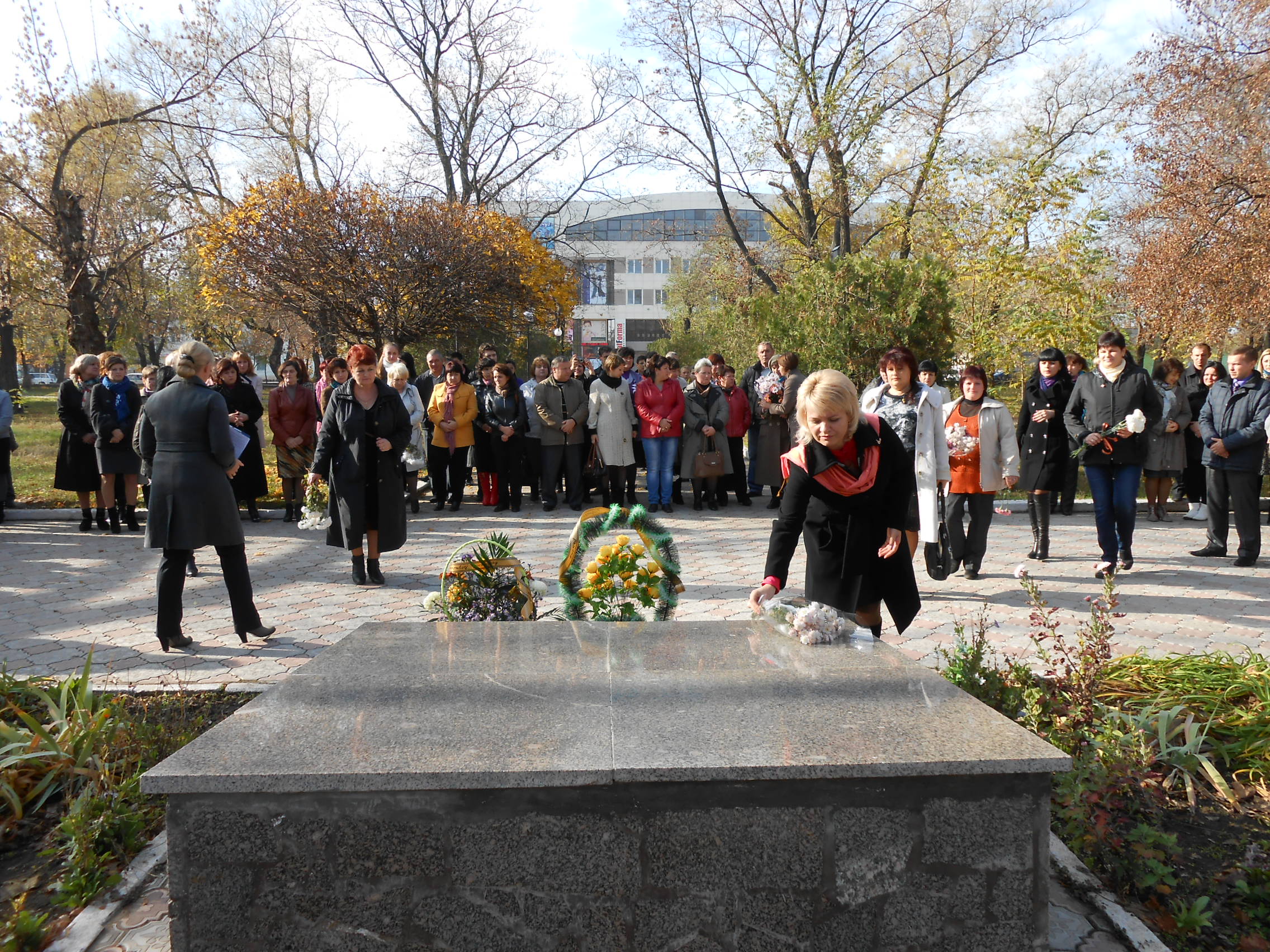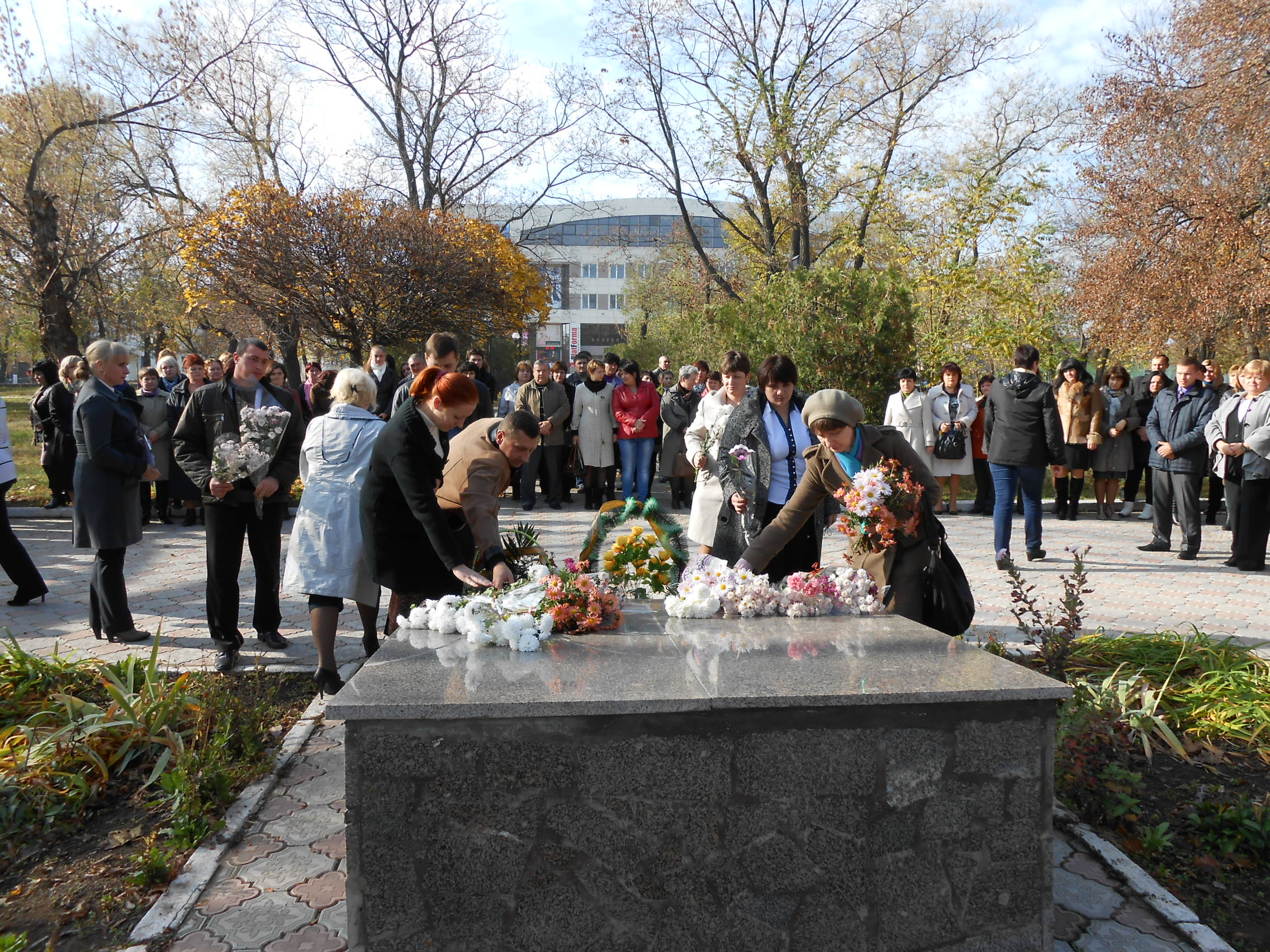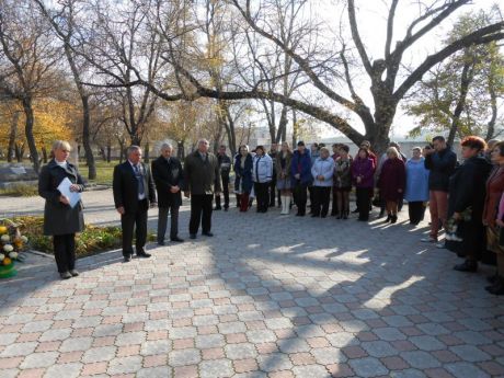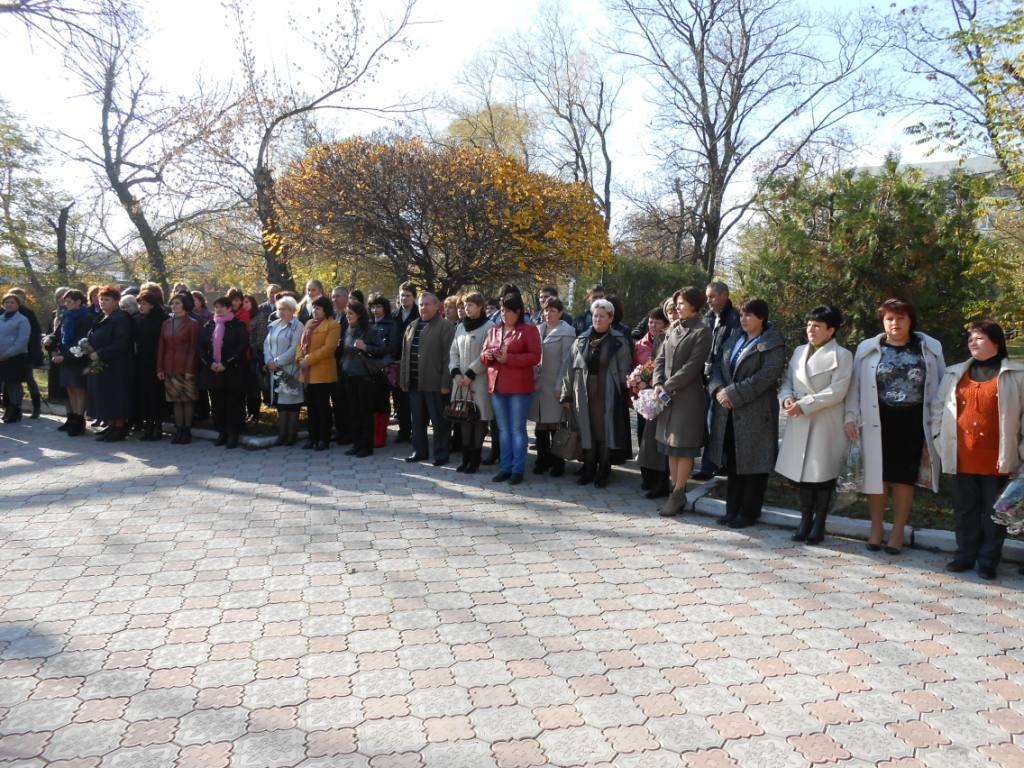 Зі словами вітань до присутніх звернулися також голова районної ради І. А. Бурдін та голова районної організації Ветеранів України В. Т. Мотер-Борчук. Після виступів всі присутні поклали квіти до памятного знаку.