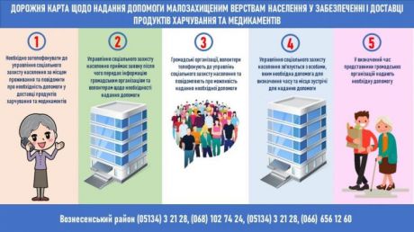 З метою забезпечення соціального захисту населення в період карантину у зв`язку з коронавірусною інфекцією (COVID-19) в районі, на базі управління соціального захисту населення Вознесенської райдержадміністрації, створено «гарячу» лінію для надання допомоги малозахищеним верствам населення (одиноким особам та особам, які одиноко проживають, громадянам віком понад 80 років, громадянам похилого віку, які потребують догляду, особам з інвалідністю та іншим особам, які потребують допомоги) у забезпеченні та доставці продуктів харчування та медикаментів до місця їх проживання.