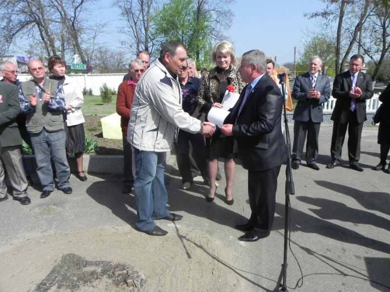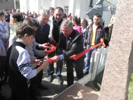 Після виступів присутніх голова Вознесенської районної державної адміністрації Кучер Олександр Борисович, голова Вознесенської районної ради Бурдін Іван Арсентійович та голова громадської організації «Союз Чорнобиль України» у Вознесенському районі Яроцький Микола Михайлович перерізали стрічку та відкрили пам’ятний обеліск ліквідаторам аварії на Чорнобильській АС.