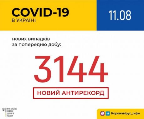В Україні зафіксовано 3 144 нові випадки коронавірусної хвороби COVID-19 – це антирекорд кількості нових хворих за добу.