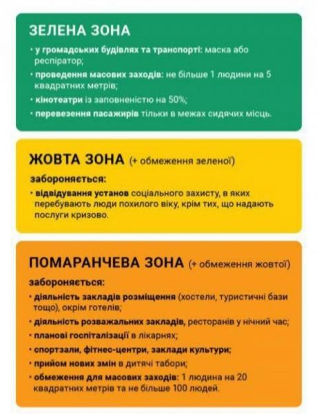 Також діє обмеження для масових заходів: 1 людина на 20 квадратних метрів та не більше 100 людей.