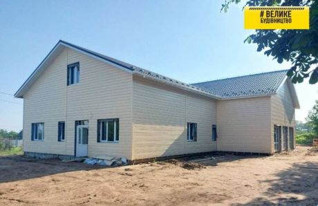 Працівниками підрядної організації впорядковано фасад, завершено роботи з монтажу карнизів та звісу покрівлі. Стіни внутрішніх приміщень пошпакльовано. Встановлено блискавкозахист. На разі в процесі роботи з облаштування теплого полу та укладання плитки. Також здійснюється вимощення.
