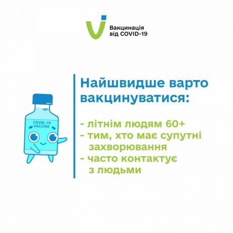 Знайдіть найближчий центр/пункт вакцинації, вакцинуйтеся та нагадайте своїм близьким про важливість щеплення від COVID-19