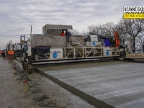 Так, працівники підрядної організації ТОВ «Європейська дорожньо-будівельна компанія» після влаштування нижнього шару бетонного покриття приступили до укладання важкого цементобетону завтовшки 26 сантиметрів.