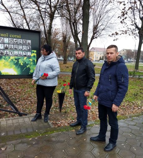 Сьогодні, напередодні Дня Гідності та Свободи, щоб висловити свою повагу борцям за свободу та незалежність України, вшанувати подвиг учасників Революції Гідності, виконуючий обов’язків та повноважень голови, заступник голови райдержадміністрації Іван Білоконь, керівник апарату райдержадміністрації Олена Максютенко та голова районної ради Спартак Гукасян поклали квіти до пам’ятної стели та хвилиною мовчання вшанували пам'ять загиблих, віддаючи шану тим громадянам, які ціною власного життя стали на захисті державних, демократичних цінностей, прав і свобод людини.