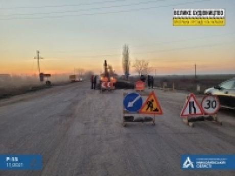 На відтинку автошляху Р-55 Одеса-Вознесенськ-Новий Буг км 179+600 - км 207+656 від села Новомиколаївка у напрямку міста Новий Буг тривають ремонтні роботи.