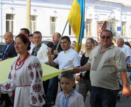 Від адмінбудівлі під звуки патріотичних пісень вулицями Соборності, Кібрика, Центральна та Одеська пройшла святкова хода за участю керівництва району, міста, учасників АТО (ООС), волонтерів, активістів, трудових колективів та молоді, які урочисто несли розгорнутий прапор нашої Держави.