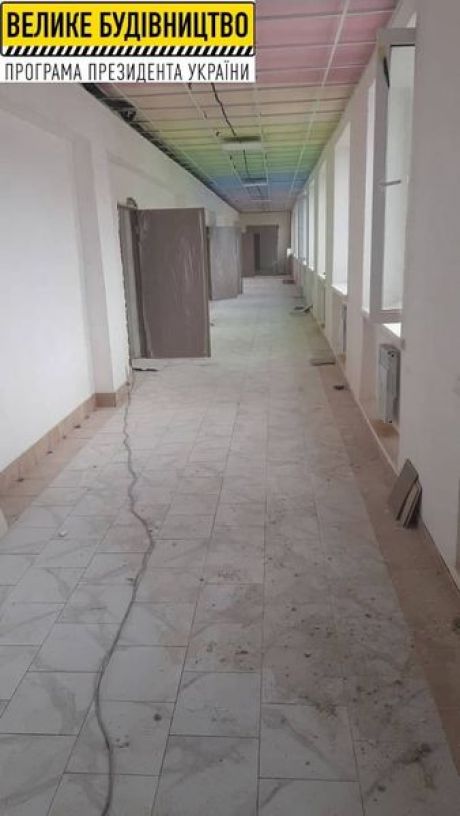 Будівельники підрядної організації активно виконують внутрішні та зовнішні роботи на об`єкті. Зокрема улаштовано стяжку підлоги з покриттям її плиткою та лінолеумом. Завершено фінішне шпаклювання. Змонтовано тут й підвісні та гіпсокартонові стелі, встановлено понад 30 нових ламінованих дверей, побудовано нові перегородки з газобетону. Здійснюється фарбування.