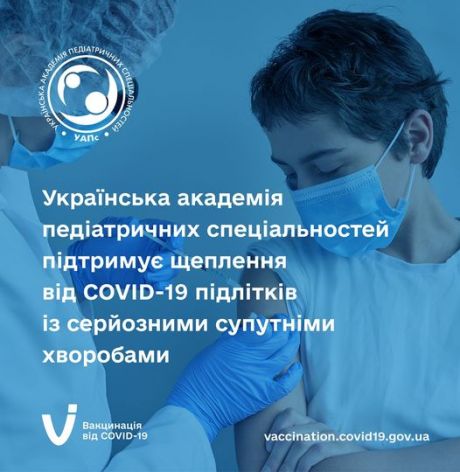 Українська Академія Педіатричних Спеціальностей підтримує рекомендації Національної технічної групи експертів з питань імунопрофілактики та рішення Міністерства охорони здоров'я України, яким рекомендовано щепити вакциною Comirnaty/Pfizer-BioNTech дітей віком від 12 років, які мають високі ризики важкого перебігу та ускладнень після COVID-19 через супутні хвороби.