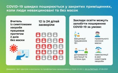 Адже школа може стати епіцентром поширення коронавірусу. Наприклад, у США невакцинований вчитель заразив коронавірусом половину учнів та учениць у класі, а загалом захворіли 26 осіб. Про цей випадок у початковій школі округа Марін у Каліфорнії йдеться у звіті Центрів з контролю та профілактики захворювань у США (C.D.C.). Вчитель вперше відчув симптоми 19 травня, проте ще 2 дні викладав у класі, де навчається 24 дитини. Педагог не використовував маску, незважаючи на відповідну вимогу.