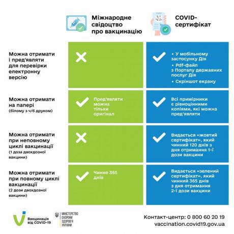 У чому різниця між Міжнародним свідоцтвом та СOVID-сертифікатом - дивіться в інфографіках.