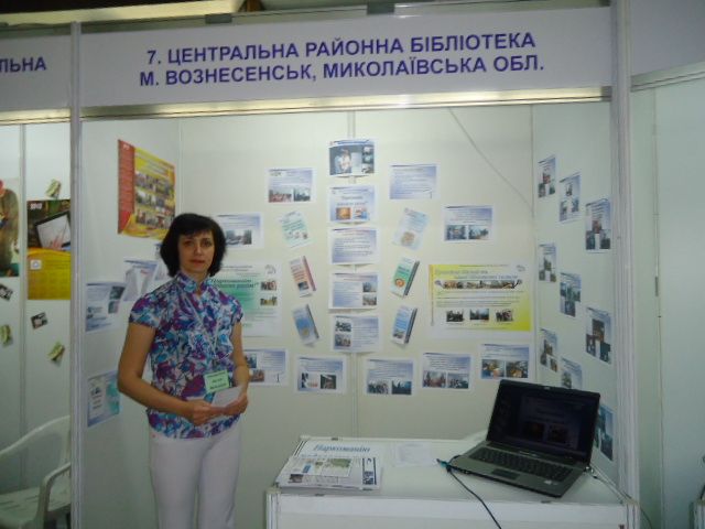 21 – 22 травня 2012 р. в м. Києві на Ярмарку бібліотечних інновацій «Сучасна бібліотека: розвиваємо місцеві громади» бібліотекар Центральної районної бібліотеки Н.М.Євстратьєва презентувала реалізацію проекту «Наркоманію подолаємо разом» у Вознесенському районні. (фото ярмарка бібліотечних інновацій)