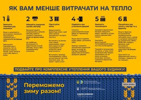 Зазначимо, що наразі Міністерством розвитку громад та територій України розпочато другий етап інформаційної кампанія «Готуймося!», присвячений підвищенню обізнаності громадян про те, як зменшити теплові витрати в домівках та як діяти, якщо зникне опалення. З цією метою Мінрегіон розробив інформаційно-графічні матеріали.