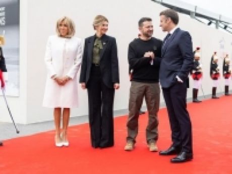 Церемонія відбулася на території меморіалу Omaha Beach у французькому місті Сен-Лоран-сюр-Мер. Присутні переглянули документальний фільм про висадку військ союзників, а також історичну реконструкцію цієї події. У небі на честь 80-річчя висадки пролетіли військові літаки.
