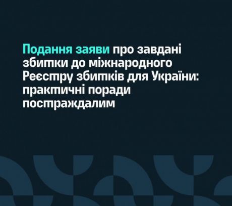 Аналітичним центром «Інститут законодавчих ідей» розроблено порадник щодо подання заяви про завдані збитки до міжнародного Реєстру збитків (RD4U) для осіб, які постраждали внаслідок збройної агресії Російської Федерації (далі – РФ) проти України.