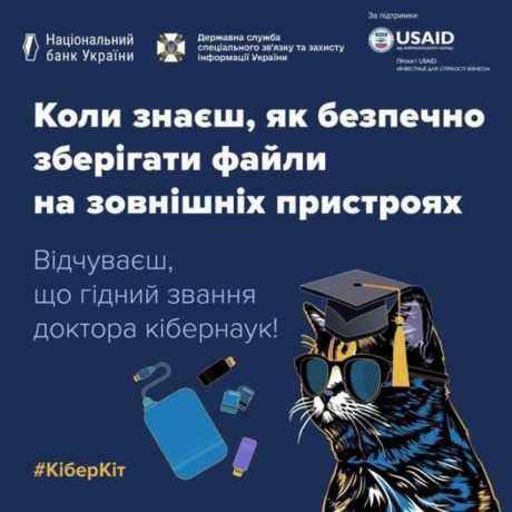 - намагайтеся уникати використання зовнішніх пристроїв, які належать іншим людям або використовуються в громадських місцях (бібліотеки, магазини тощо). Такі пристрої можуть бути заражені шкідливим програмним забезпеченням.