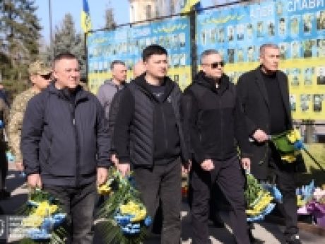 Присутні хвилиною мовчання вшанували пам’ять полеглих і поклали квіти до меморіалу.