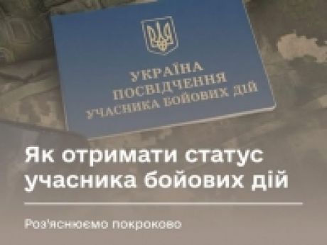 Щоб отримати статус учасника бойових дій, необхідно подати до міжвідомчої комісії Мінветеранів заяву у паперовій формі згідно з додатком 8 до Порядку № 413 та документи, довідки, які підтверджують участь у захисті України.