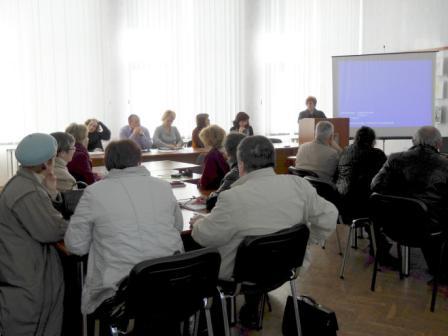 Учасникам зустрічі продемонстрували слайдів фільм «Про пільгове медичне обслуговування громадян, які постраждали внаслідок Чорнобильської катастрофи»: