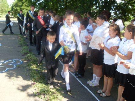 Під звуки бадьорої музики випускники вийшли на урочисту лінійку у супроводі класного керівника Ачімова Д.А. Це були вже не ті кумедні крихітки з бешкетливими очима, які прийшлі до школи 9 років тому, а серйозні юнаки й дівчата, готові поринути в бурхливе житейське море. І в думках кожного присутнього, мабуть, промайнула думка: «Як же швидко минули роки, як швидко підросли вчорашні малюки»