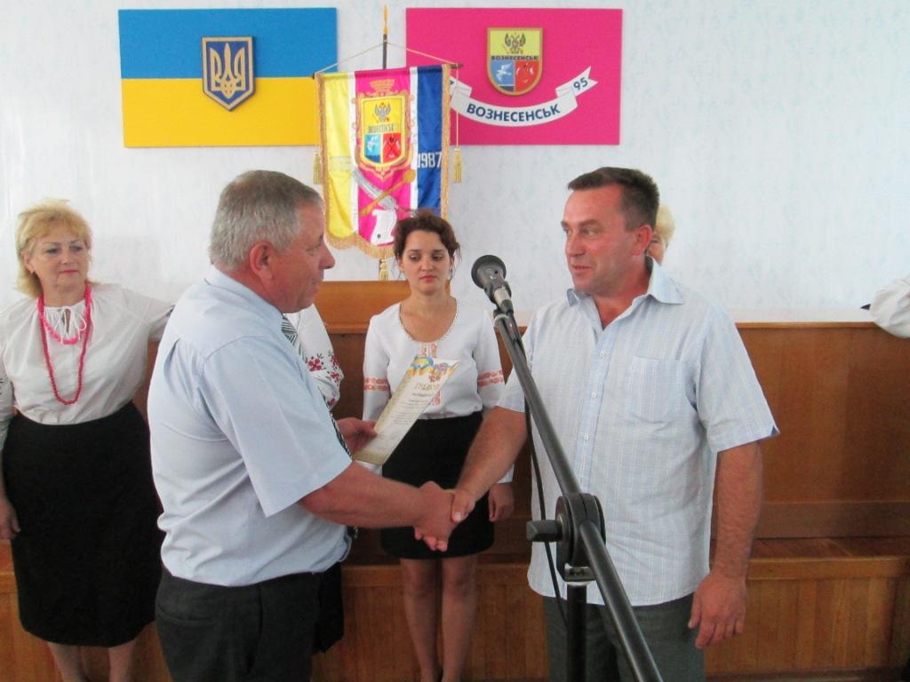 Грамотою Вознесенської районної ради за багаторічну сумлінну працю в галузі охорони здоров’я, високий професіоналізм, вагомий особистий внесок у надання медичної допомоги населенню району, активну громадську позицію та з нагоди професійного свята, Дня медичного працівника Іван Арсентійович нагородив Альміз С. Є. (медичний статистик КЗ «Вознесенський РЦПМСД), Андрєєву О. В. (медсестру Трикратської АЗПСМ), Снігура Л. П. (водія Білоусівської АЗПСМ).