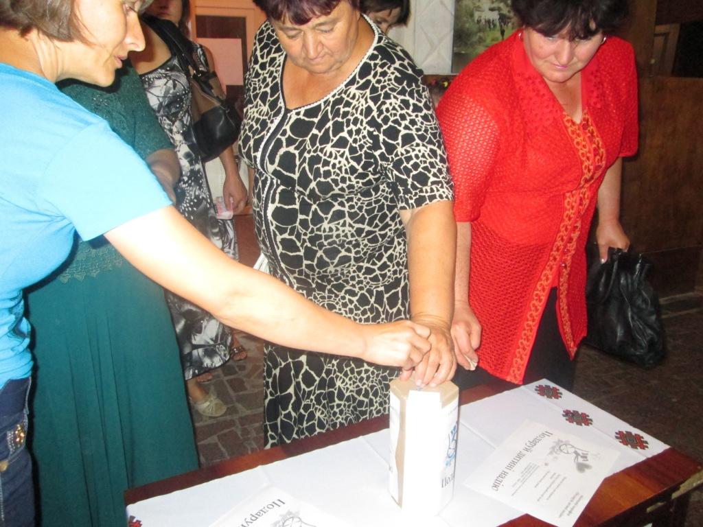 В кінці заходу було відкрито скриньку та спеціальною комісією відбувся підрахунок коштів. В результаті підрахунку голова комісії оголосив, що спільними зусиллями зібрано майже тисячу гривень.