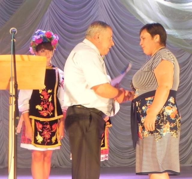 За вагомий особистий внесок у вихованні дітей у сім’ї , створення сприятливих умов для здобуття дітьми освіти, розвитку їх творчих здібностей, формування високих духовних і моральних якостей керівник району Кучер О. Б. вручив посвідчення та нагрудні знаки про почесне звання мати-героїня):