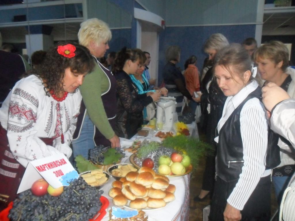 Розпочався захід з святкової ярмарки, на якому була представлена продукція від учнів, батьків та педагогічних колективів району.