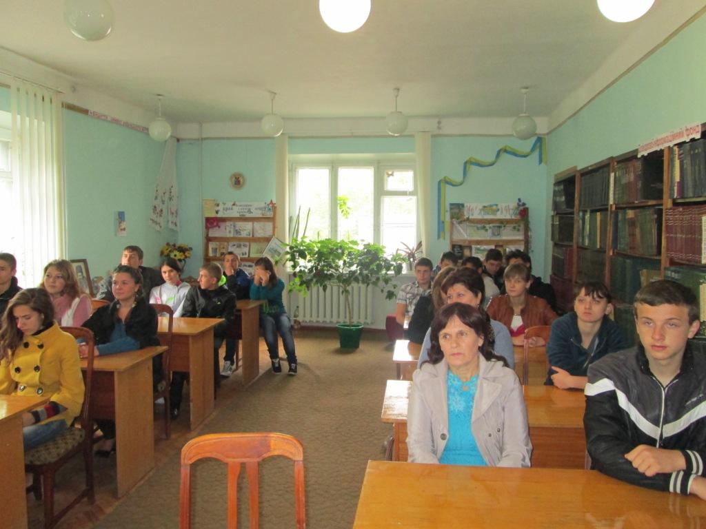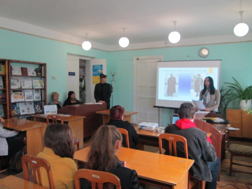 Провідний бібліотекар Т.М.Федоляк та бібліотекар відділу обслуговування О.А.Федорова розповіли присутнім про початок партизанського руху в Україні, про командирів партизанських загонів С. Ковпака, П. Вершигори, М. Наумова, С. Руднєва, Ю. Збанацького, О. Федорова. Старшокласники дізналися про діяльність Вознесенського підпільного центру під керівництвом Г.Я.Гончаренка та підпільних груп в селах Ракове, Шербані, Трикрати та ін. Захід супроводжувався електронною презентацією «День партизанської слави», до уваги присутніх було представлено перегляд літератури, яка відображає події того часу.