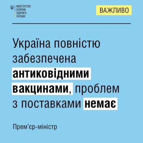 Вакцини стабільно надходять до країни і розвозяться по регіонах для подальшого вживання, проблем з постачанням немає. Про це заявив Прем’єр-міністр України Денис Шмигаль на засіданні Уряду.
